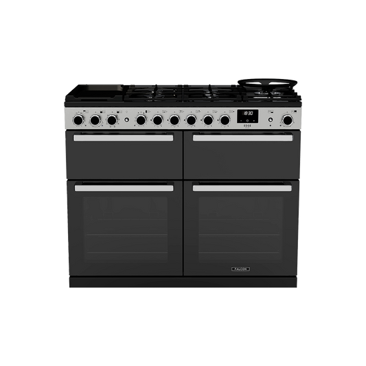 De gas uitvoering van de Falcon Edge Deluxe combineert het beste van gas en elektrisch koken. Met vijf krachtige gasbranders, een wokhouder én een halfgladde bakplaat bereid je moeiteloos een steak of Aziatisch gerechten. De gietijzeren pannendragers zijn robuust en geven het fornuis een professionele uitstraling. Ideaal voor fanatieke thuiskoks.