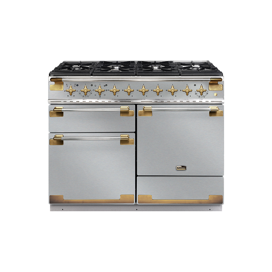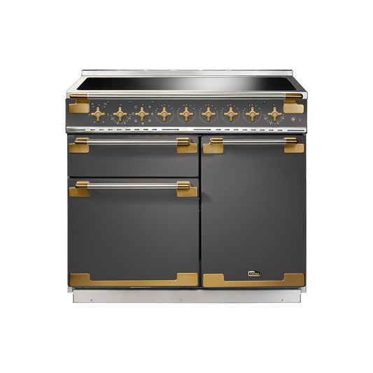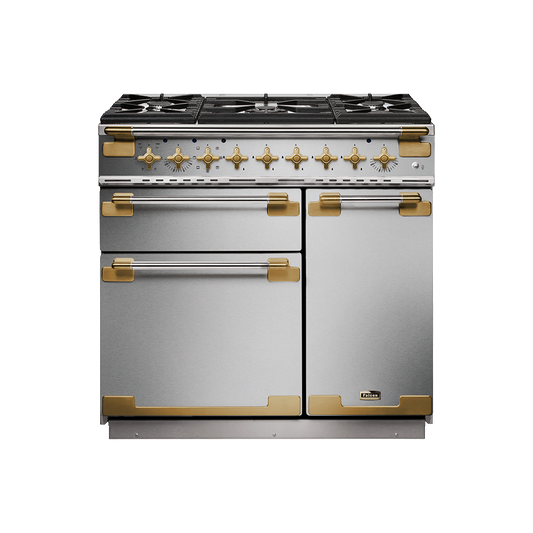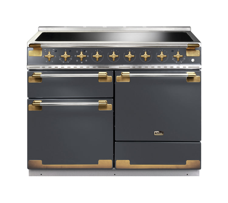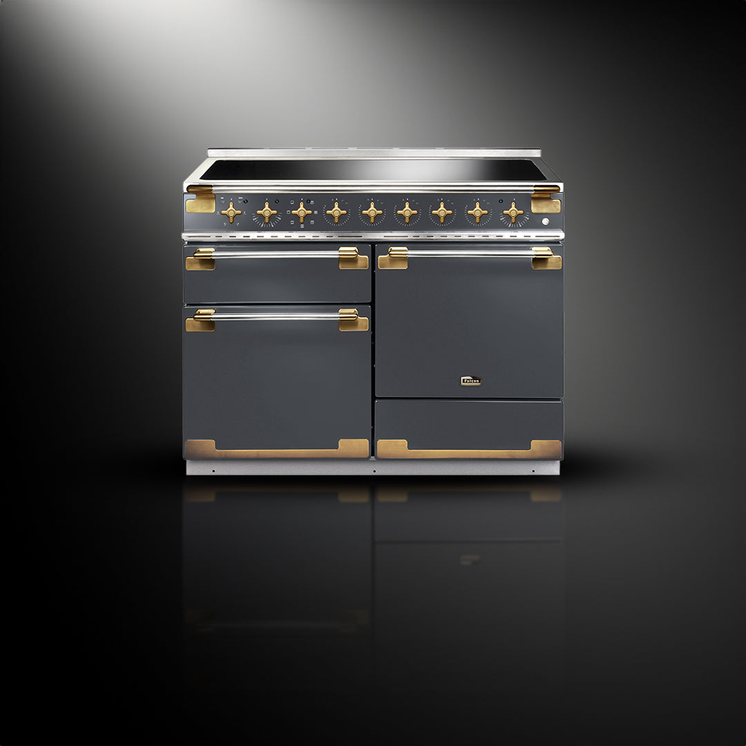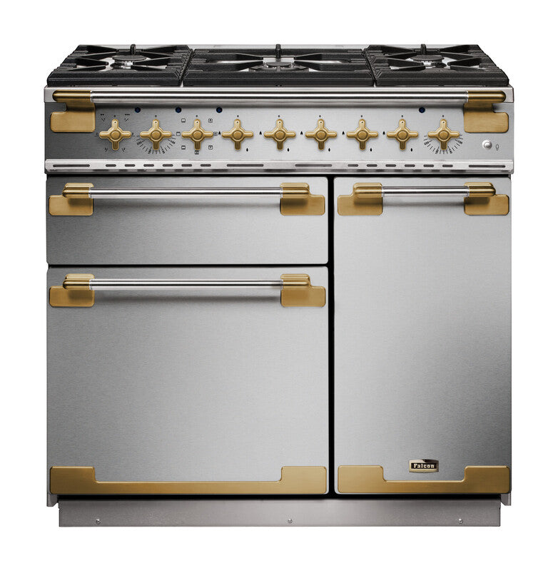 De Falcon Elise Luxe is beschikbaar in de kleuren RVS of Slate en heeft altijd een 'Antiek' messing afwerking. Dit model is beschikbaar als 90cm, 100cm en 110cm en indien gekozen wordt voor de laatste is de hetelucht oven extra groot en het fornuis ook voorzien van een opberglade.