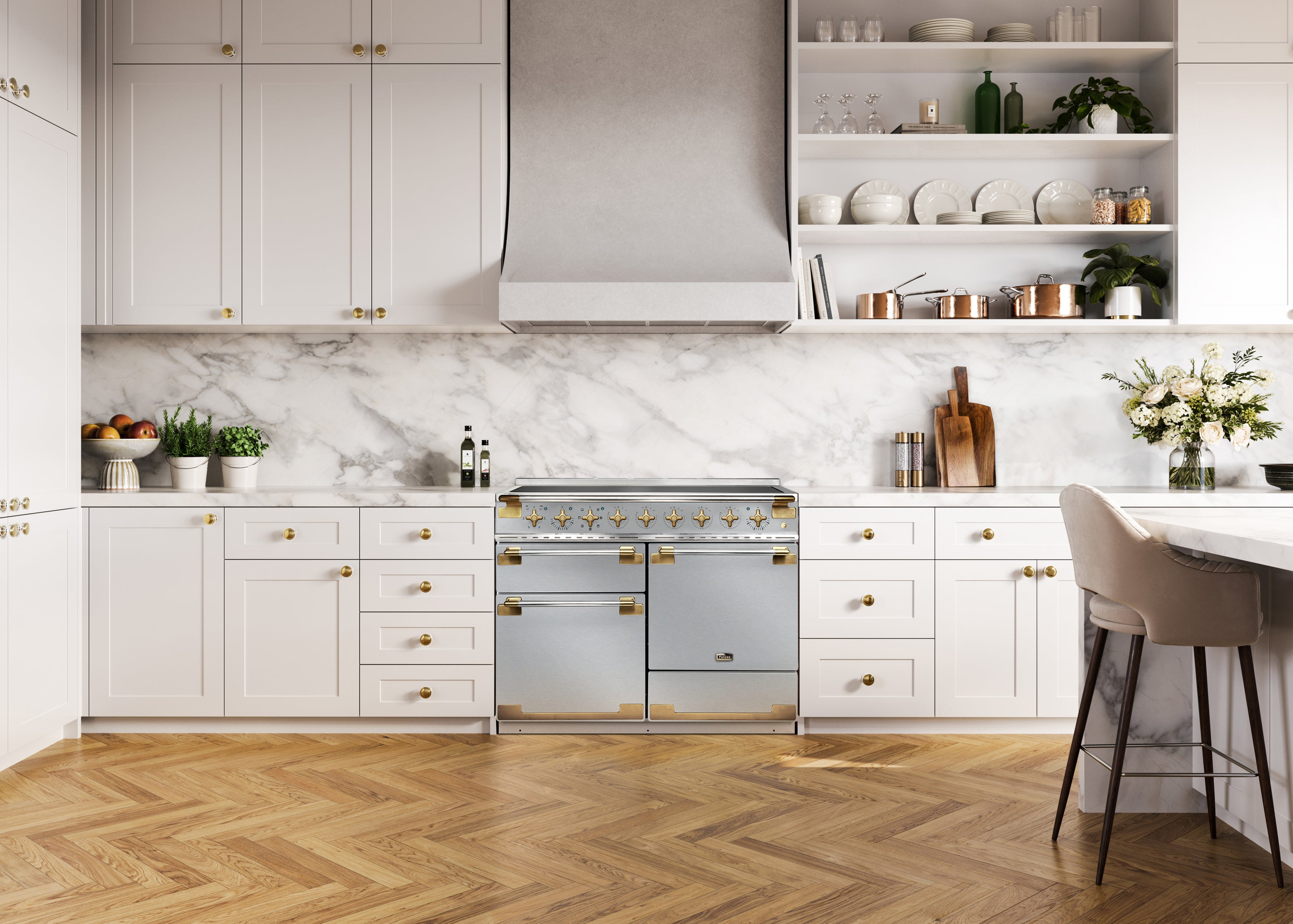 De Falcon Elise Luxe is een echte ‘special edition’ – een fornuis dat je keuken naar een hoger niveau tilt. Het ontwerp is gebaseerd op de geliefde Falcon Elise, maar dan verrijkt met prachtige details in antiek messing. Deze warme, stijlvolle afwerking geeft het fornuis een klassieke uitstraling met een luxe twist.