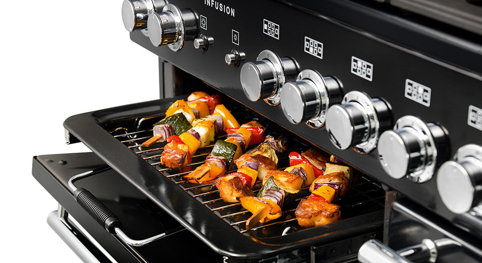 Bijna elk Falcon fornuis heeft een apart grill compartiment. De grill is ideaal voor veel verschillende gerechten zoals bijvoobeeld het grillen van aspergus, parpika, zalm, coquilles, sate of stokbrood. Onze Glide-out Grill, geplaatst op soepel werkende telescopische geleiders, is binnen een minuut klaar om te gebruiken.